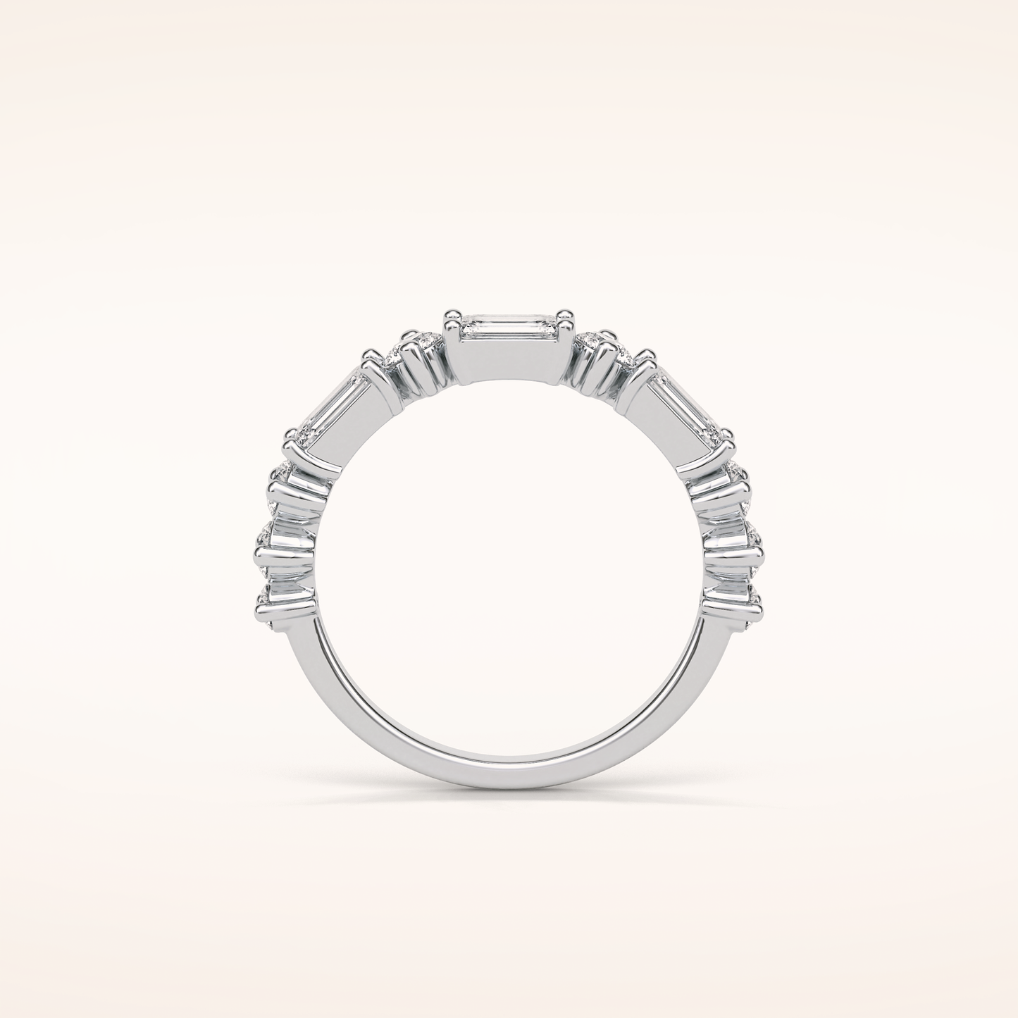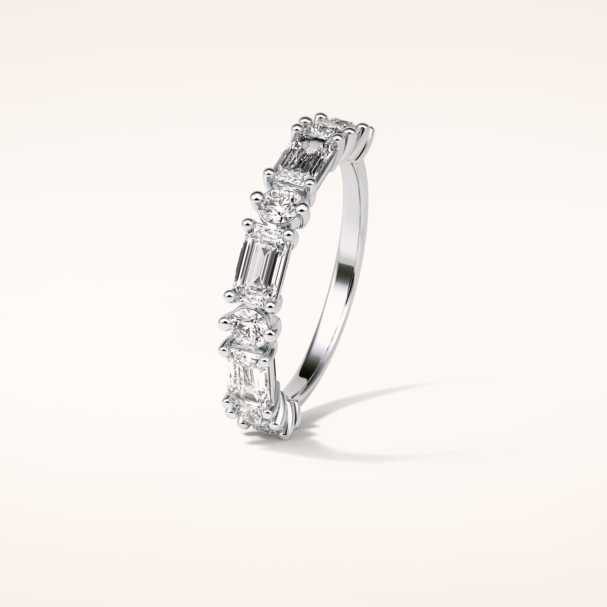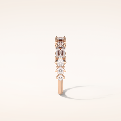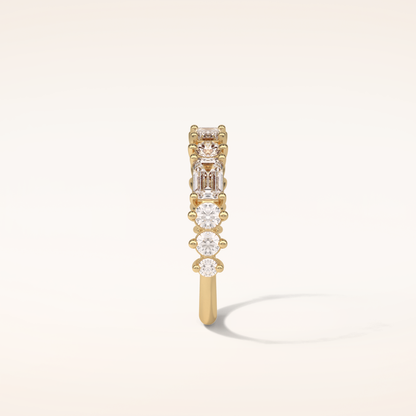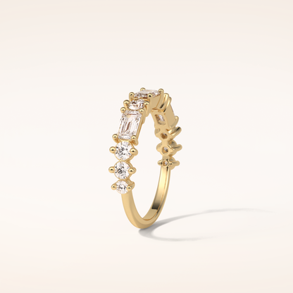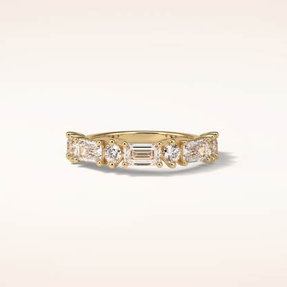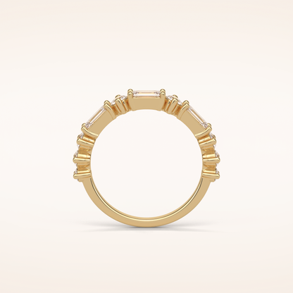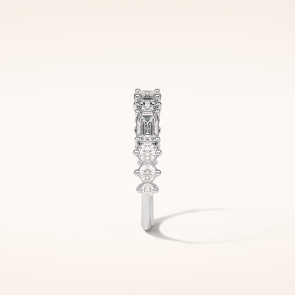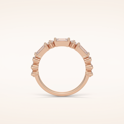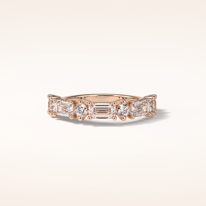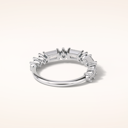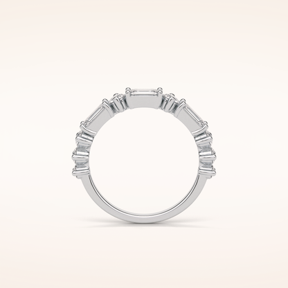 1.28 Emerald & Round Shaped Moissanite Half Eternity Wedding Band