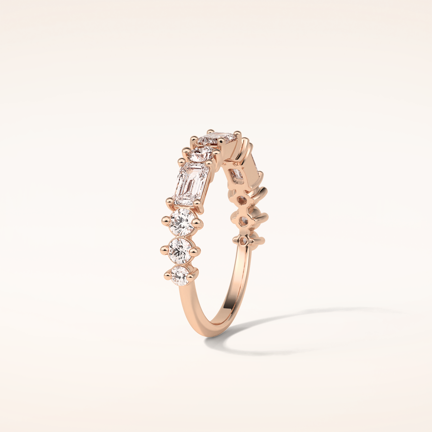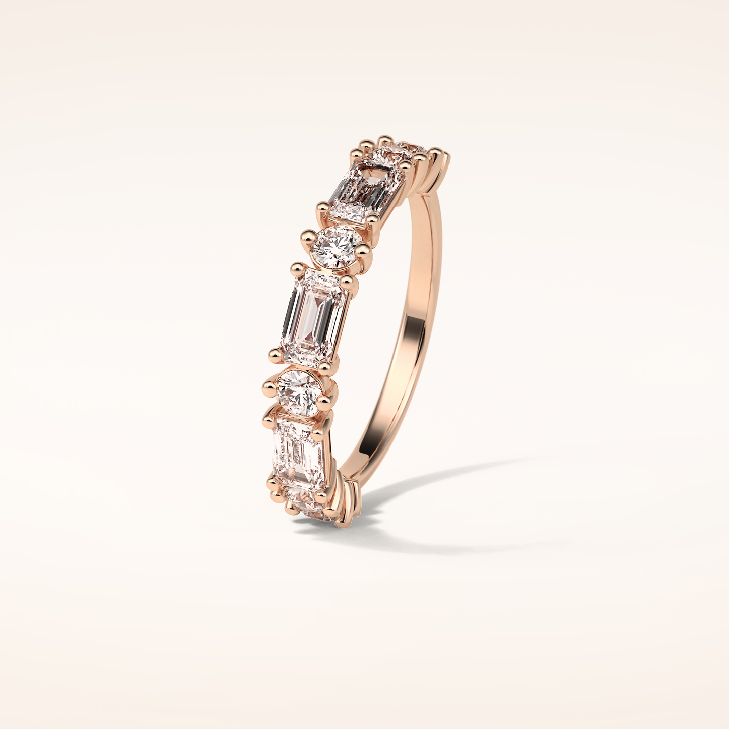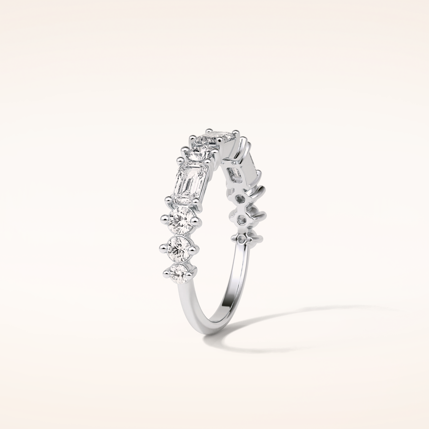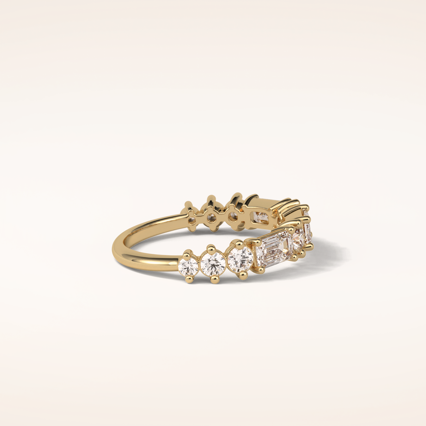 1.28 Emerald & Round Shaped Moissanite Half Eternity Wedding Band