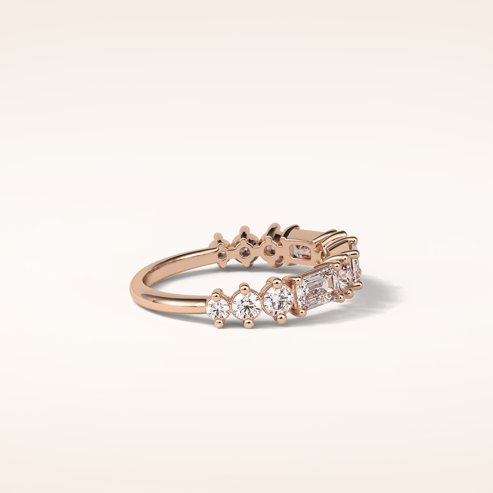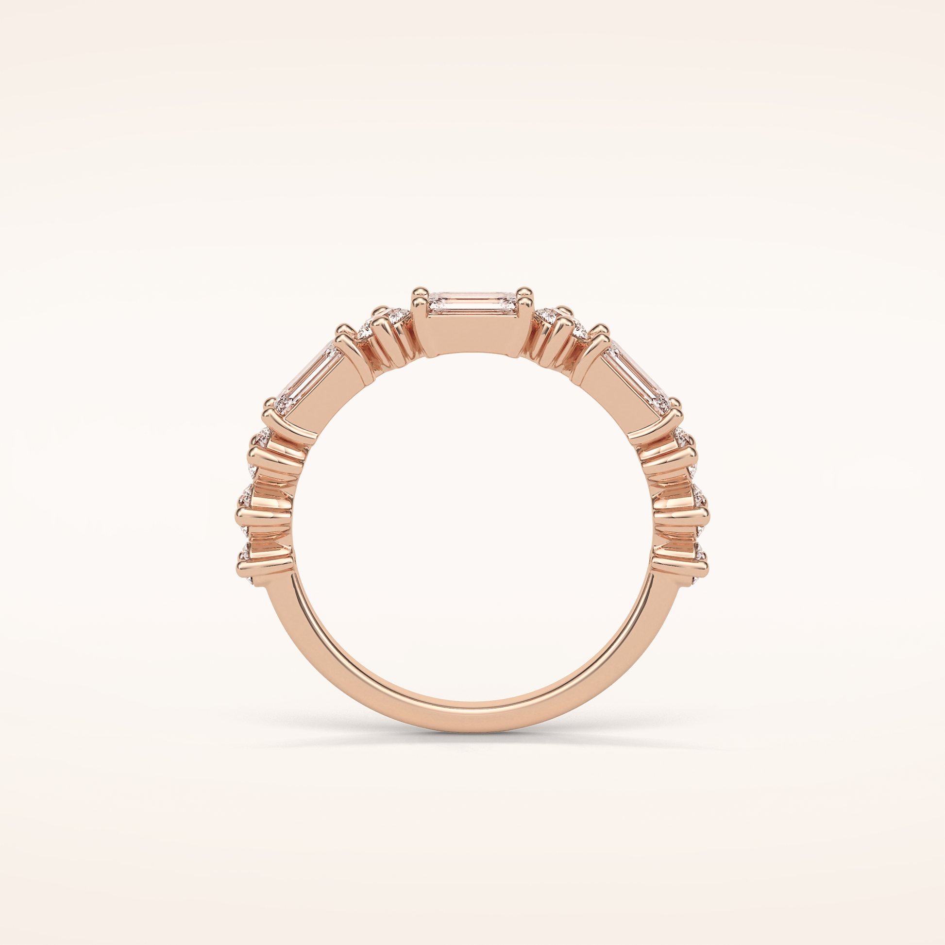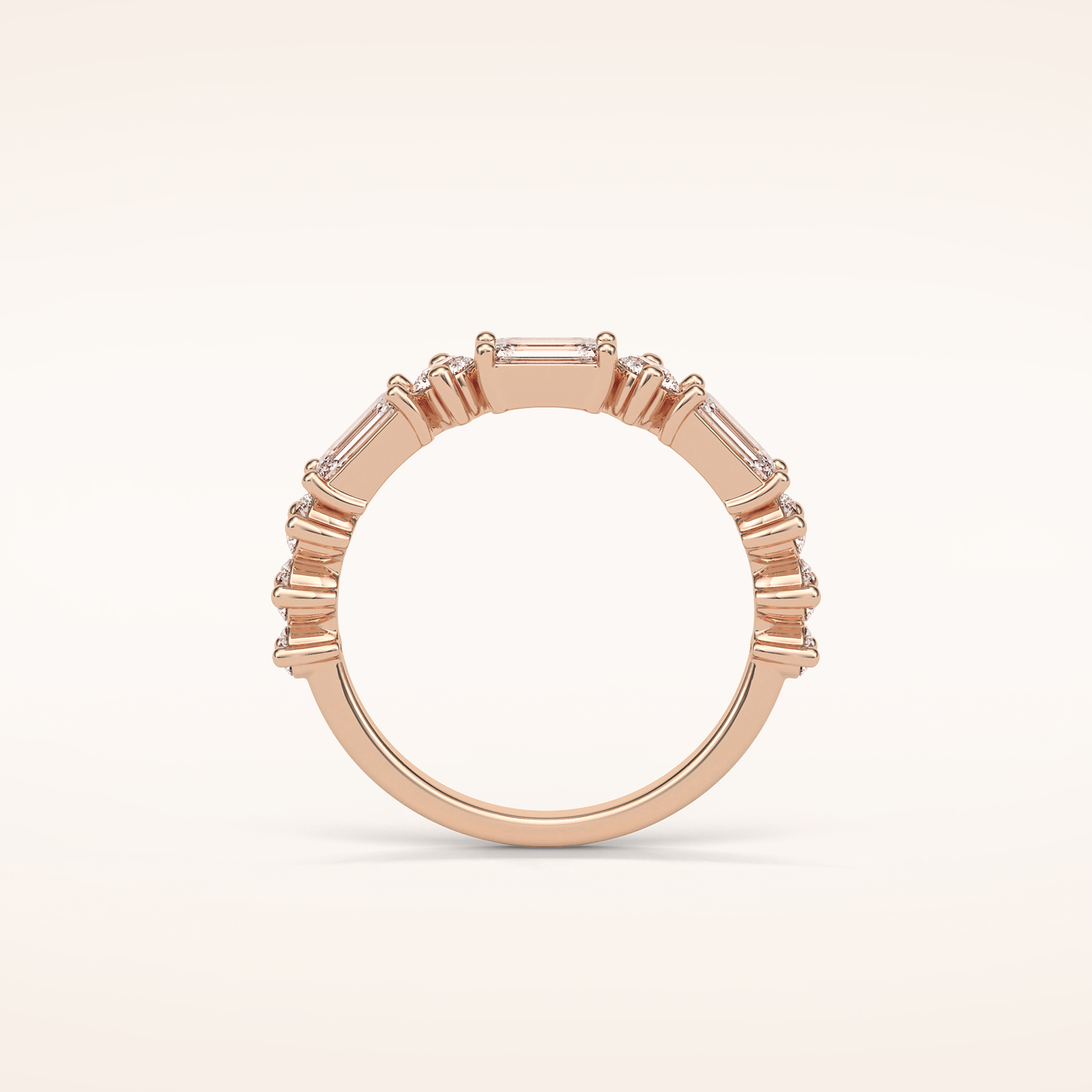 1.28 Emerald & Round Shaped Moissanite Half Eternity Wedding Band