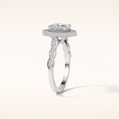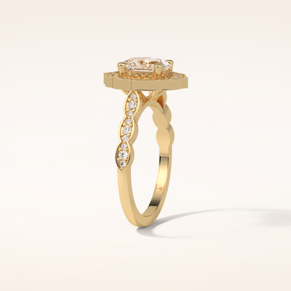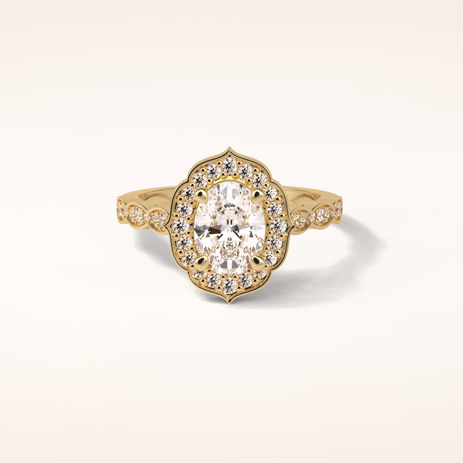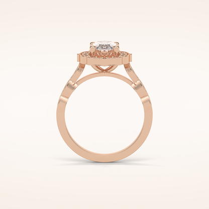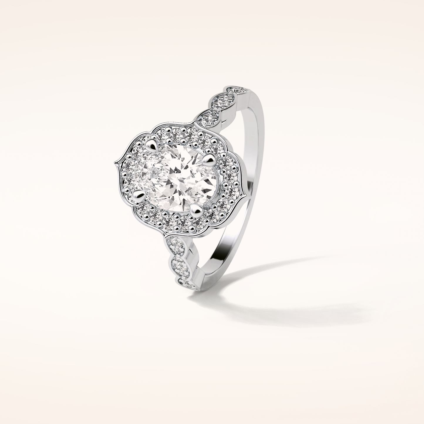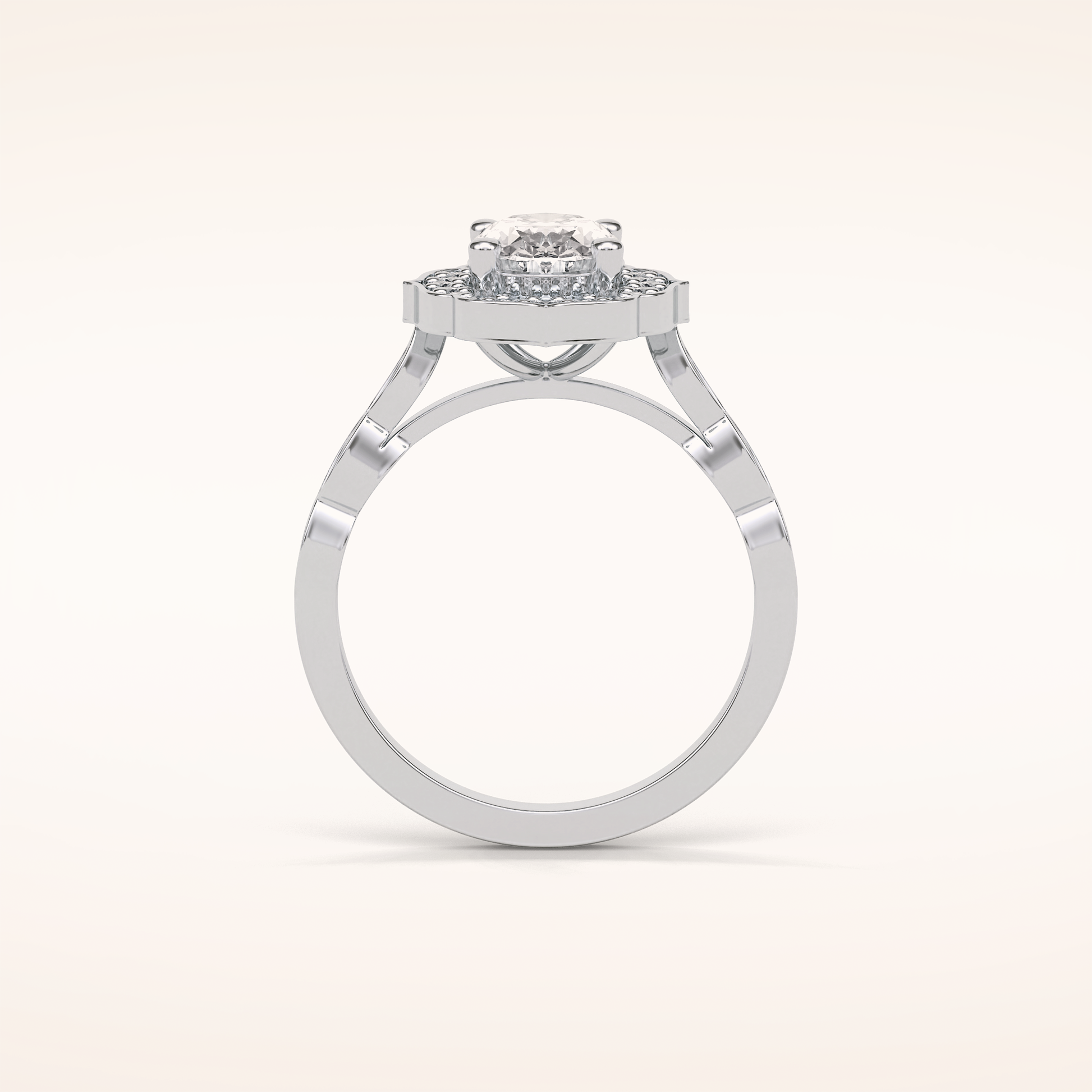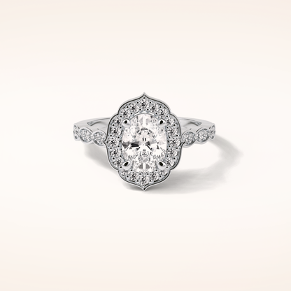 1.31 CT Oval Shaped Halo & Pave Moissanite Engagement Ring