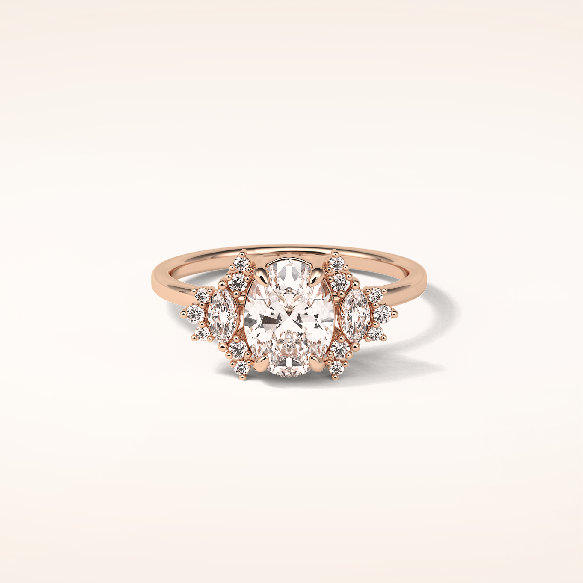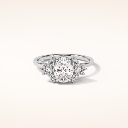 1.33 CT Oval Shaped Cluster Moissanite Engagement Ring