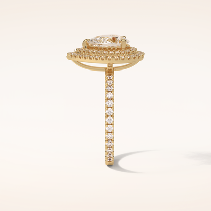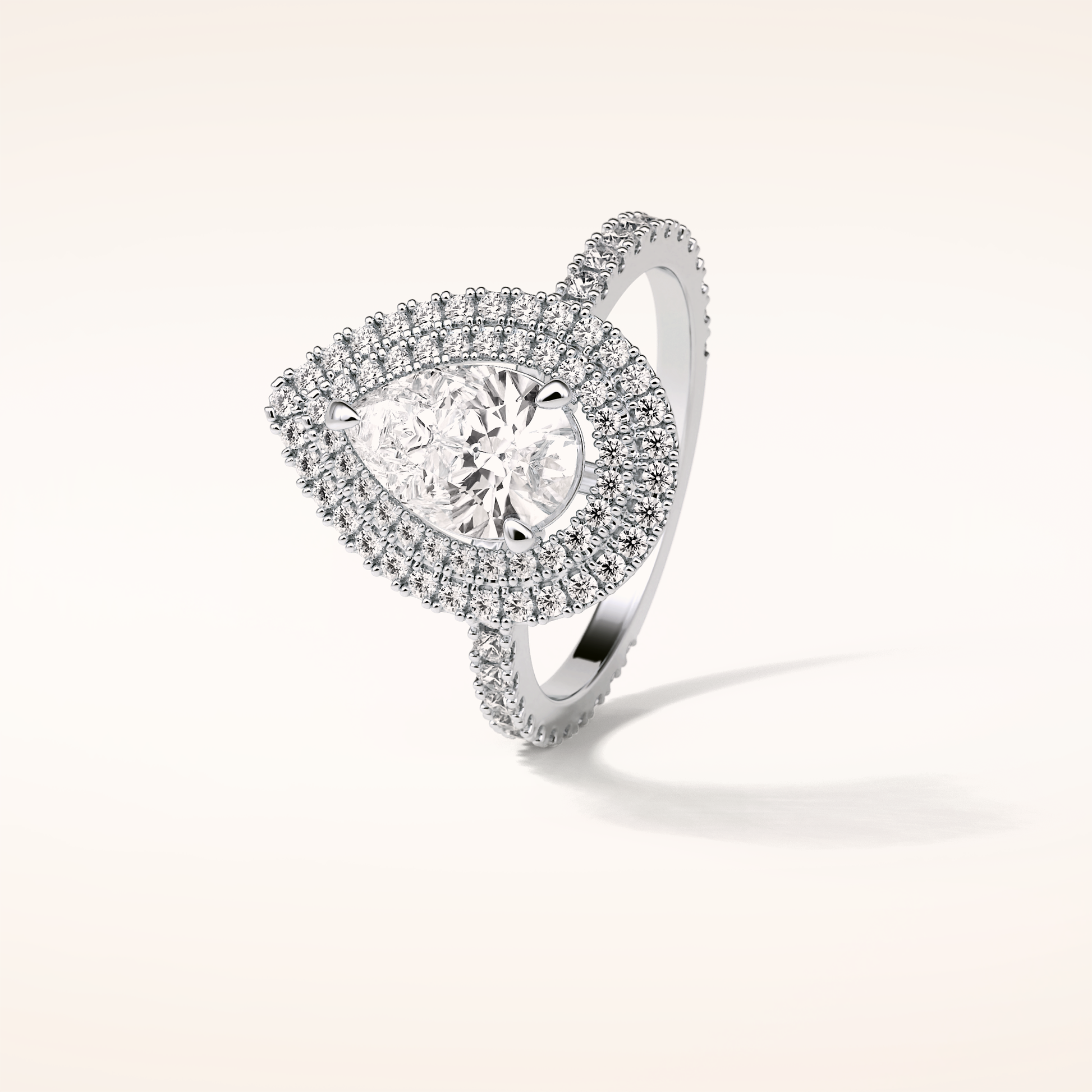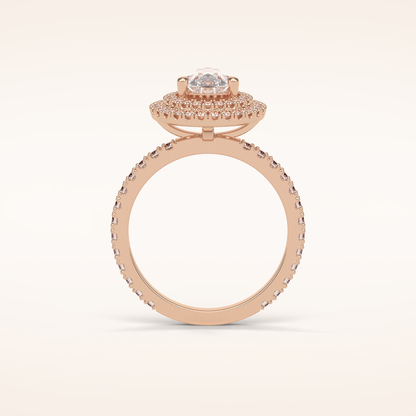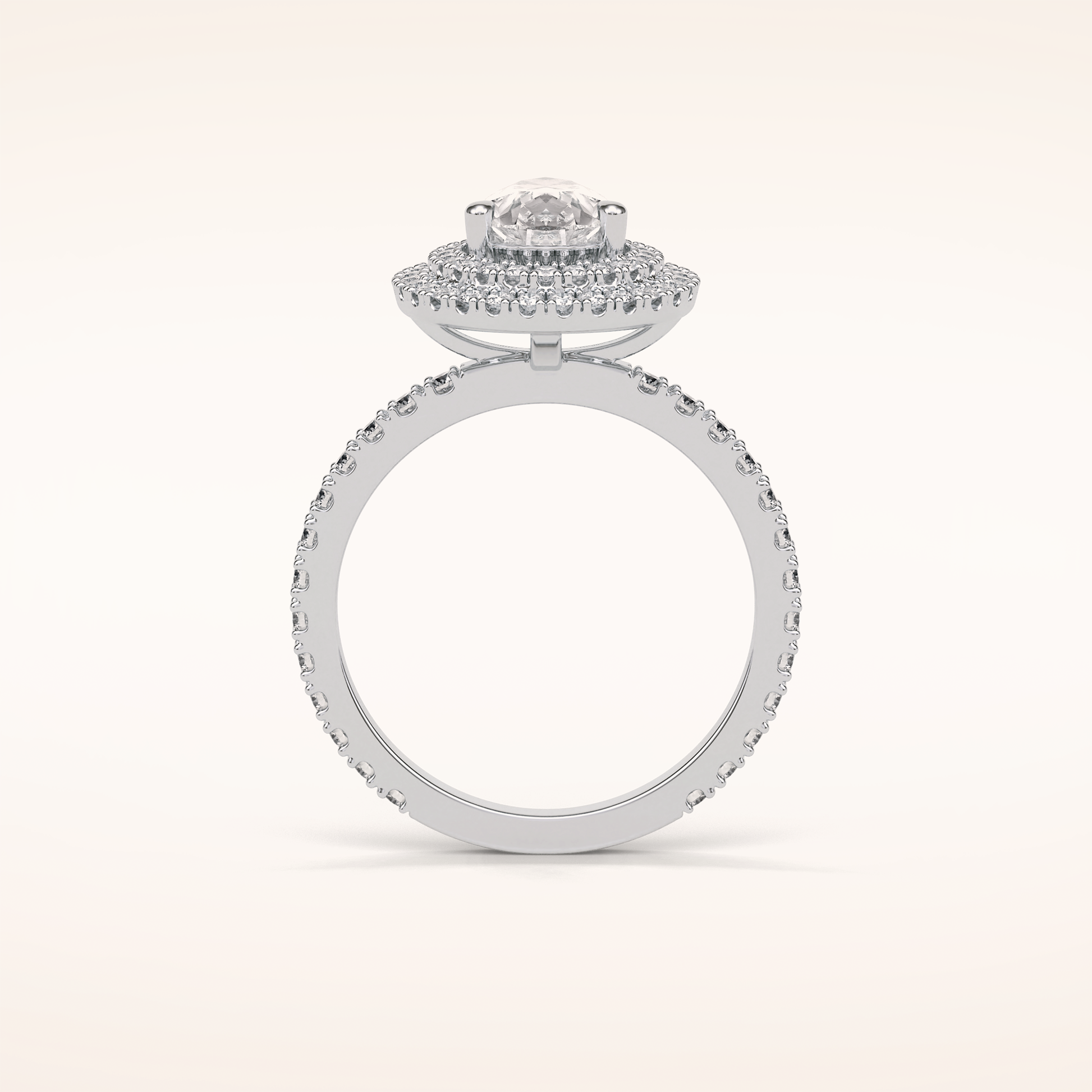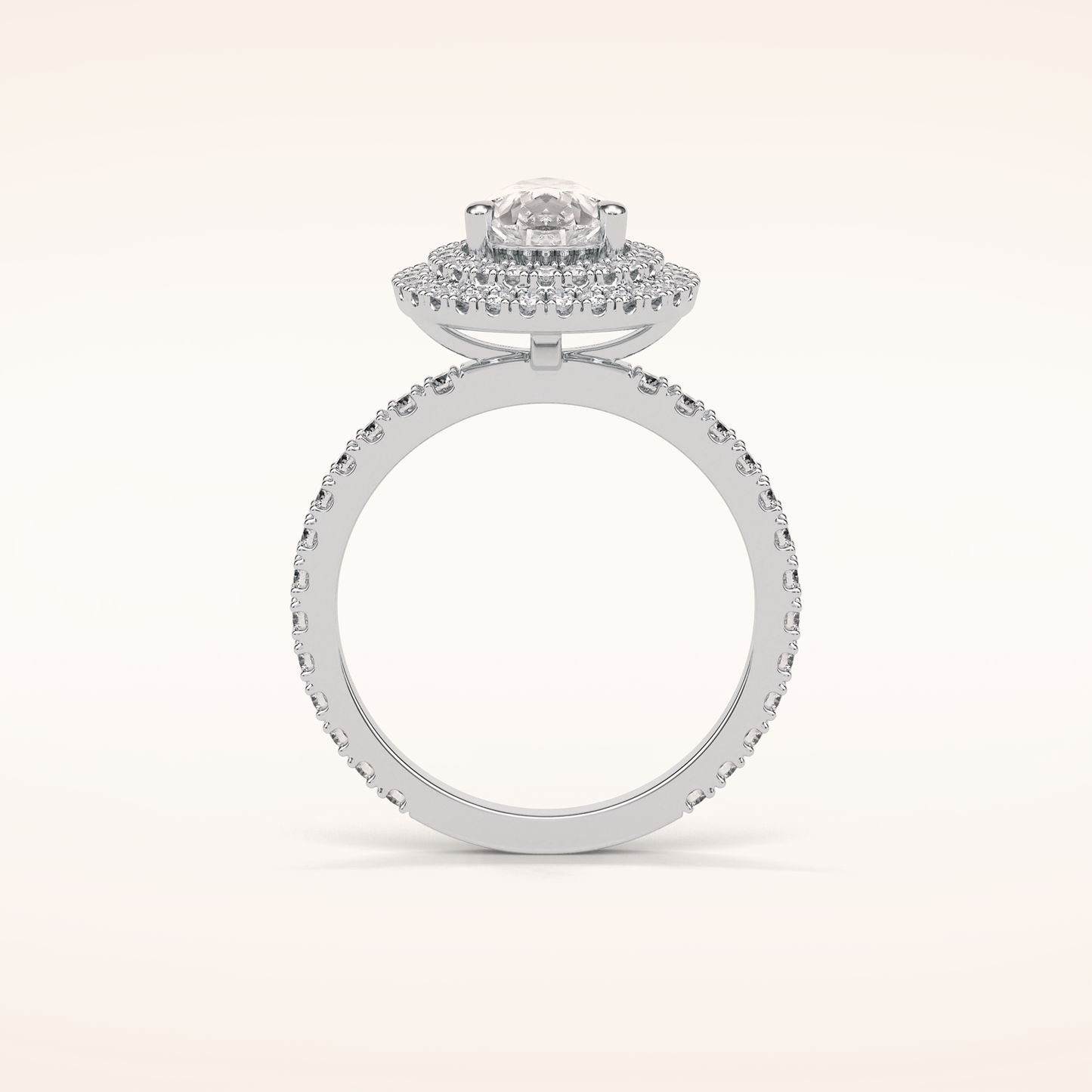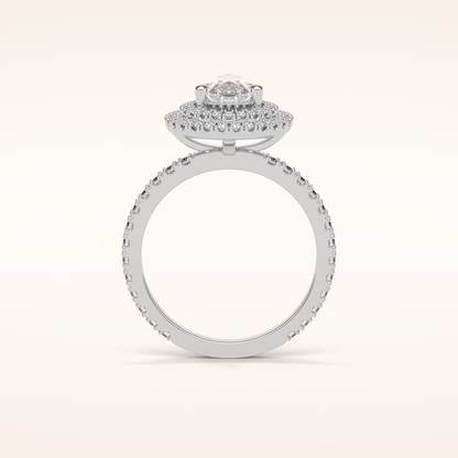 1.33 CT Pear Shaped Double Halo & Pave Moissanite Engagement Ring