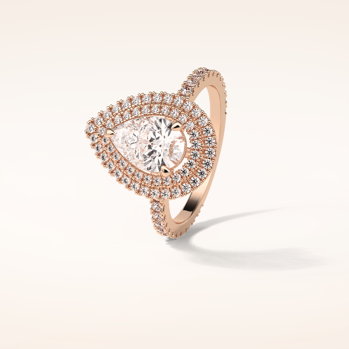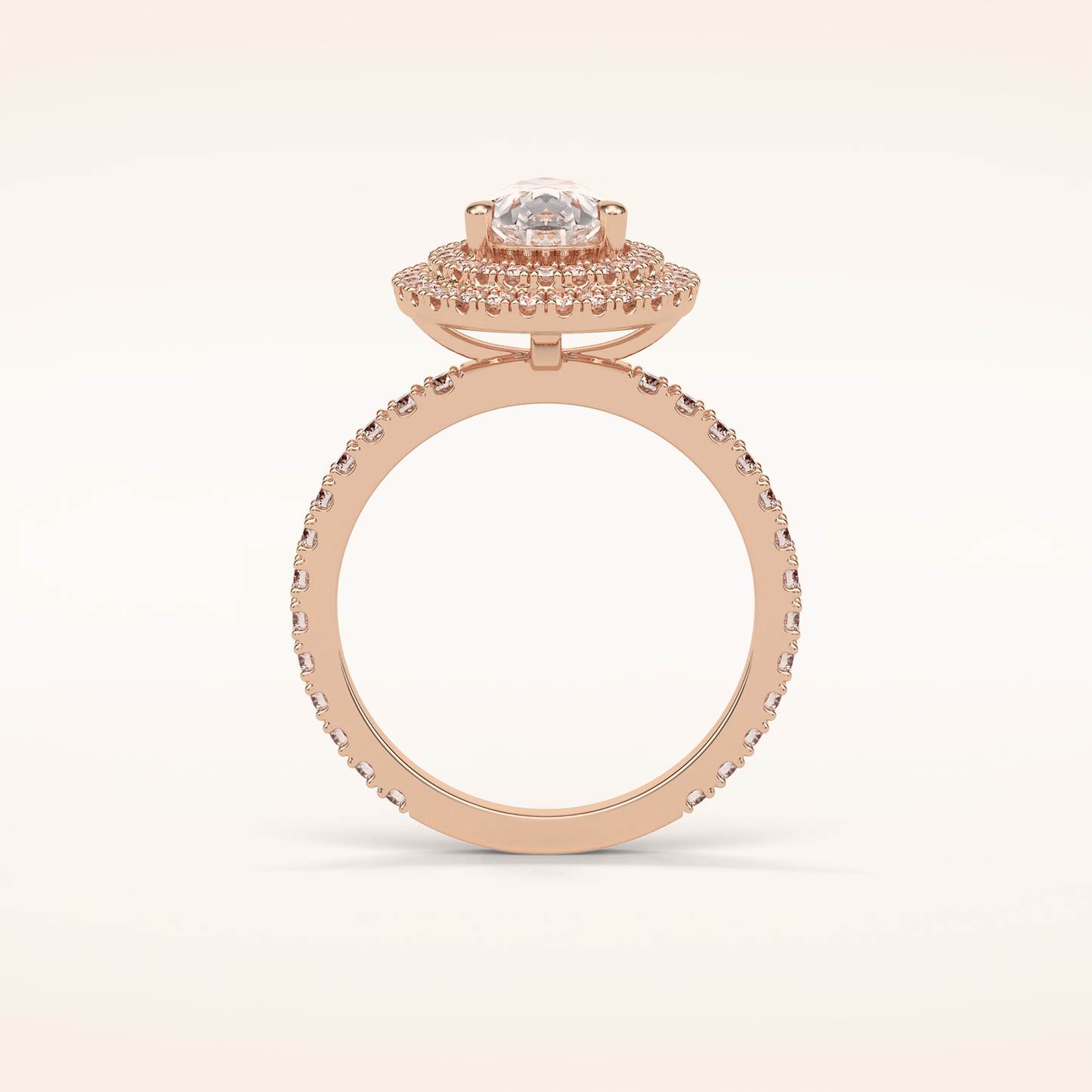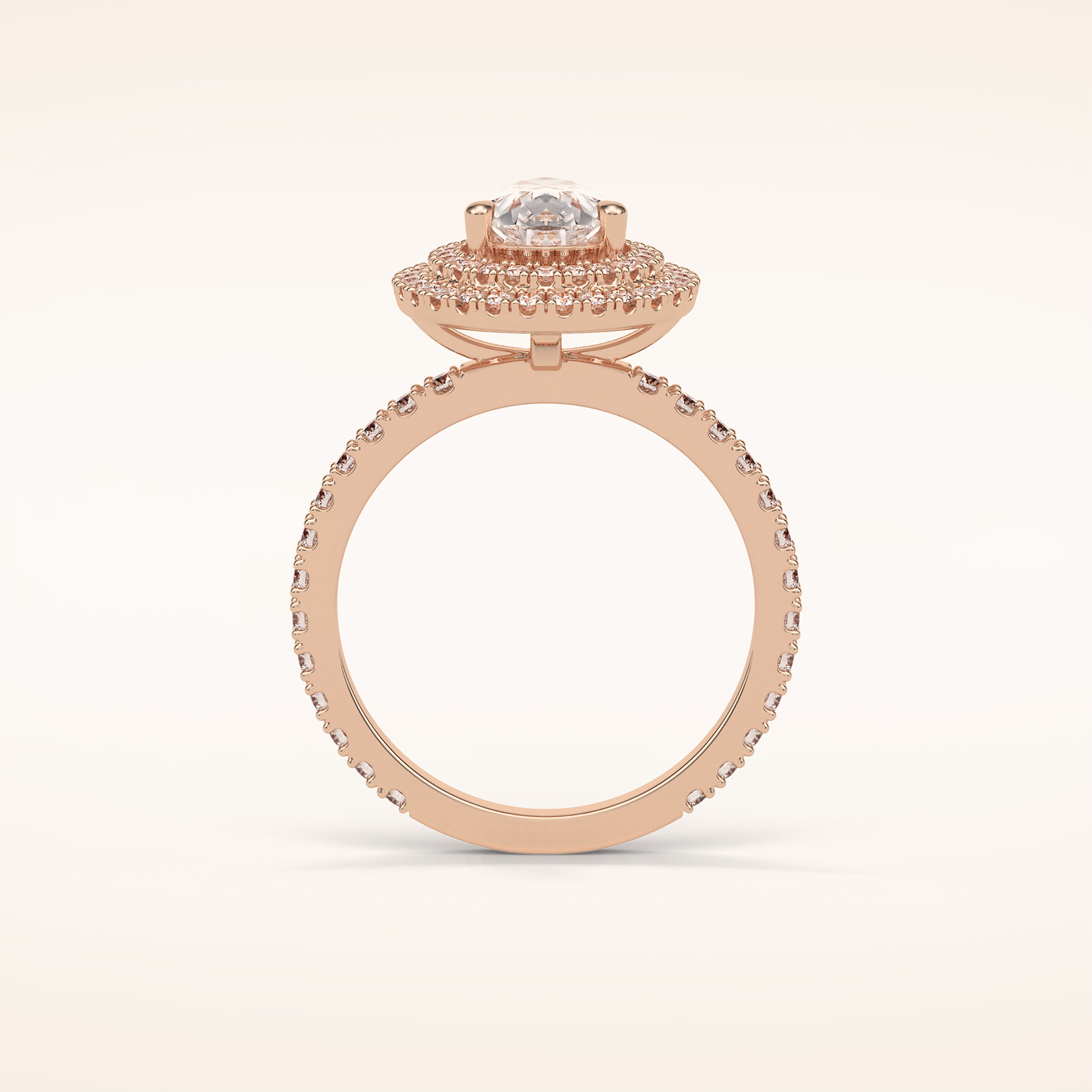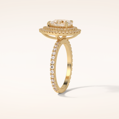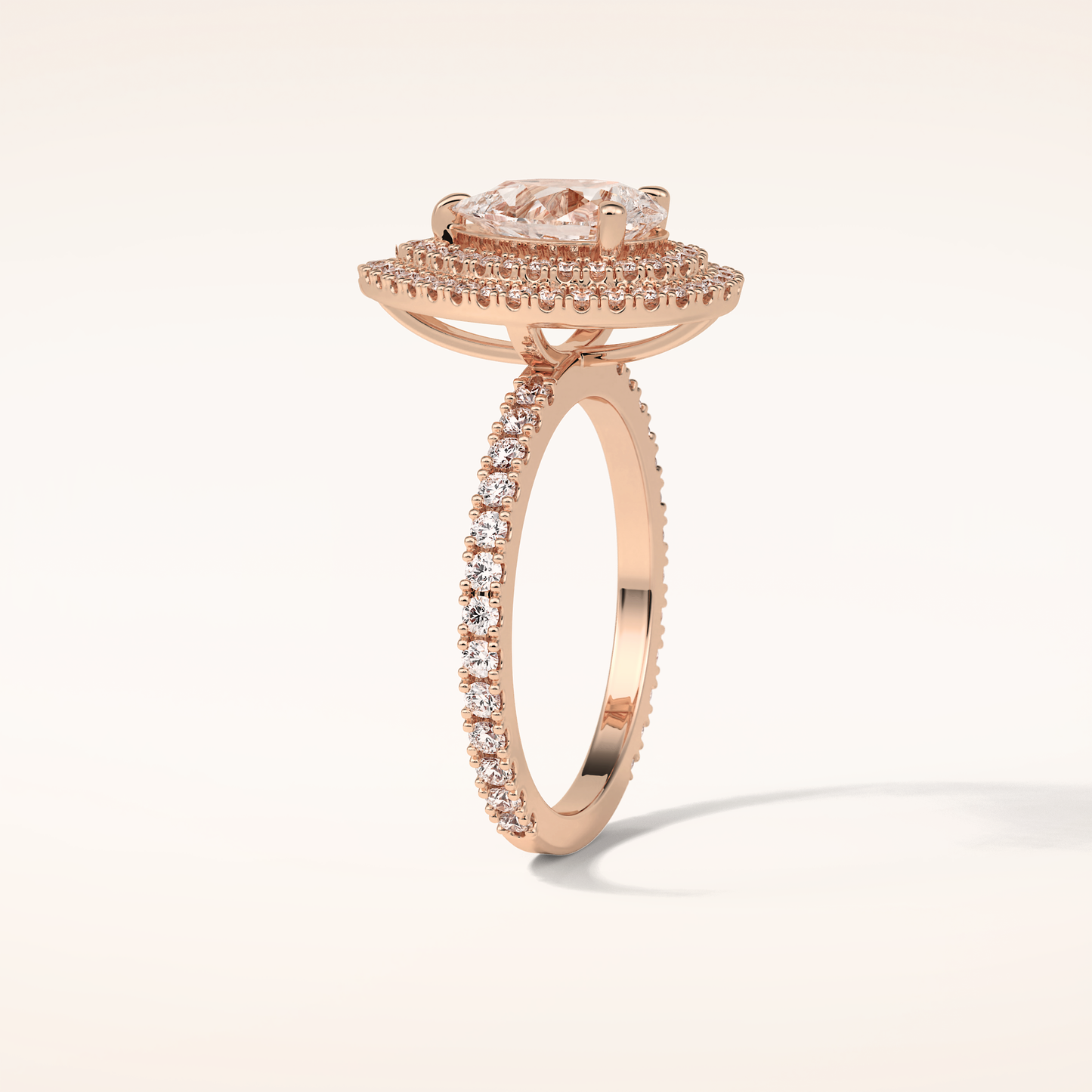 1.33 CT Pear Shaped Double Halo & Pave Moissanite Engagement Ring