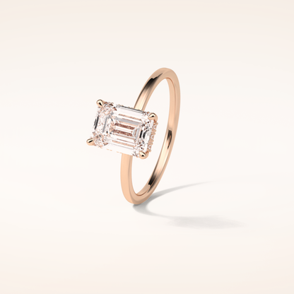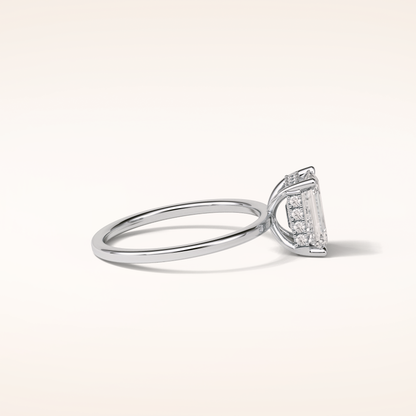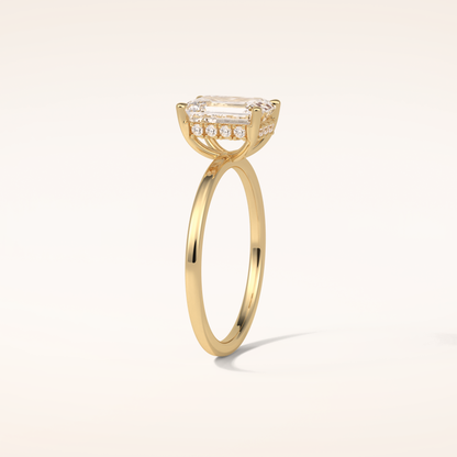 1.60 CT Emerald Shaped Hidden Halo Moissanite Engagement Ring