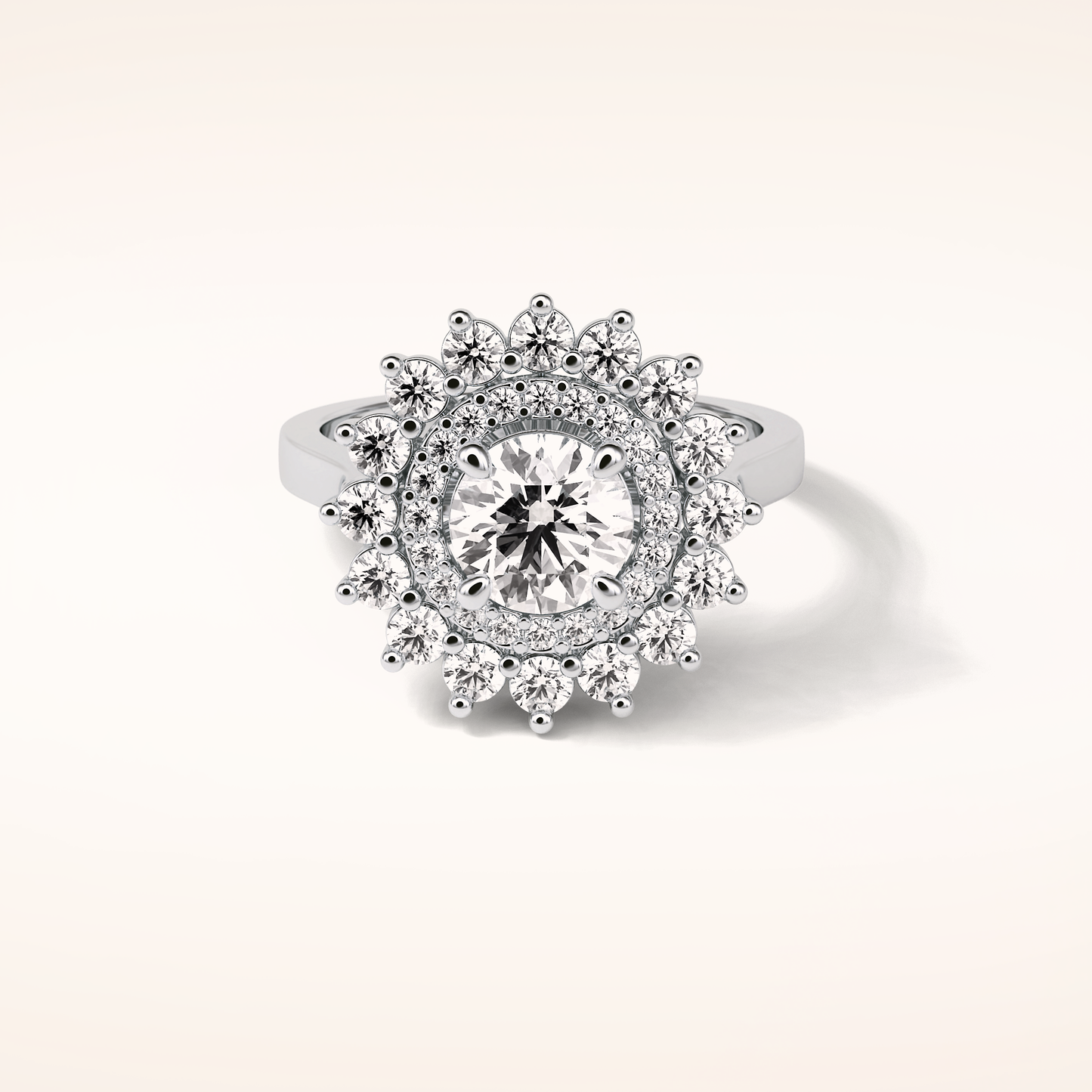 1 CT Round Shaped Double Halo Moissanite Engagement Ring