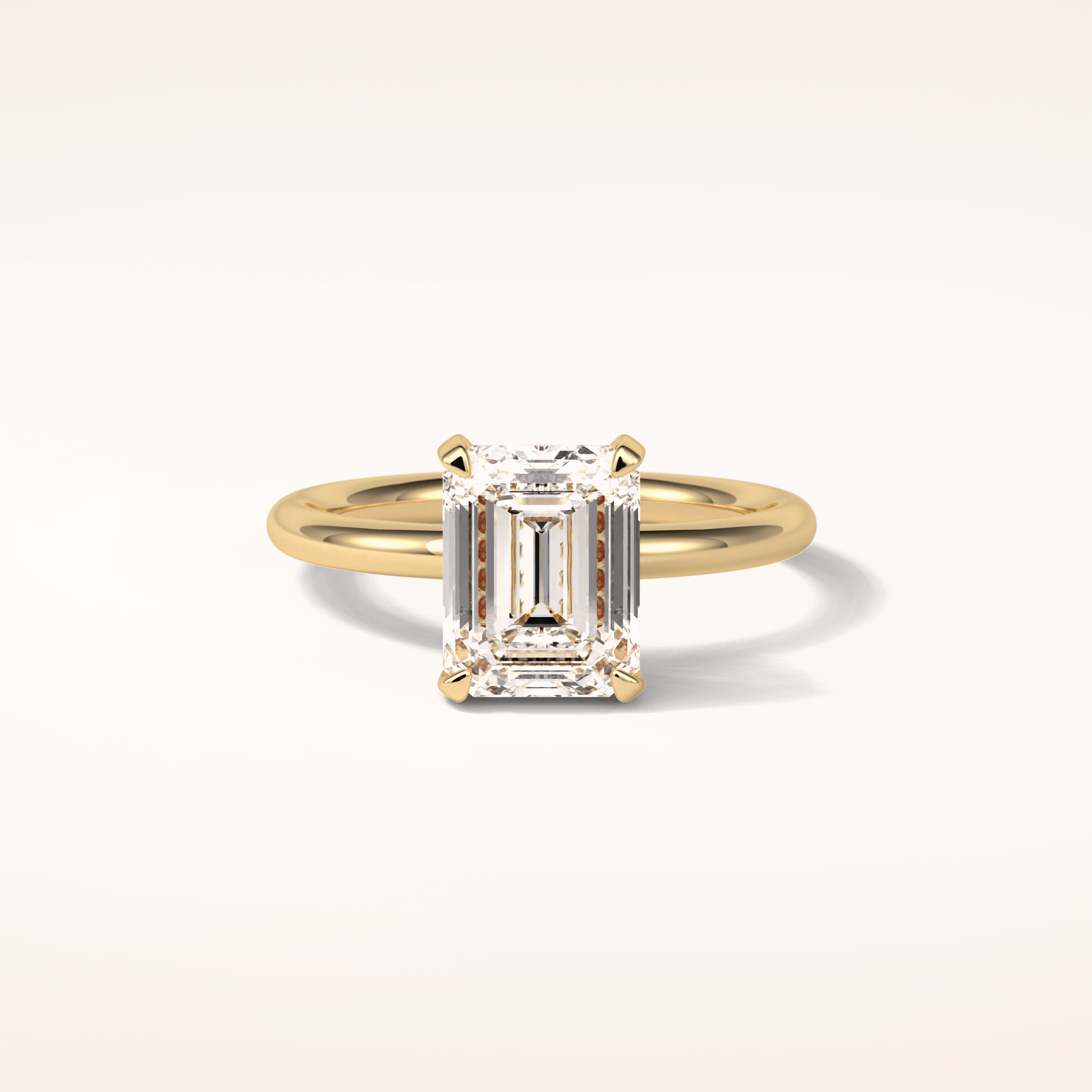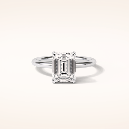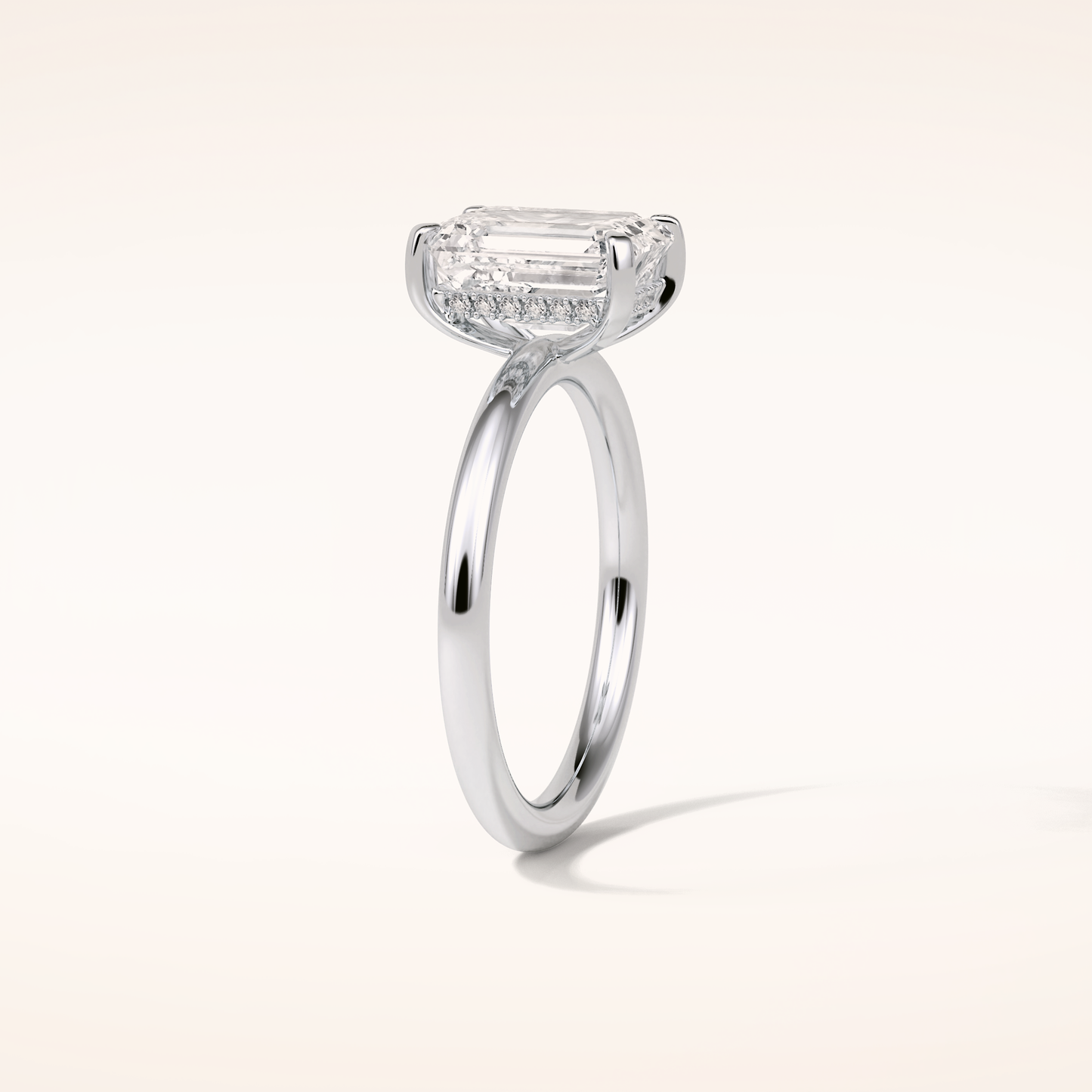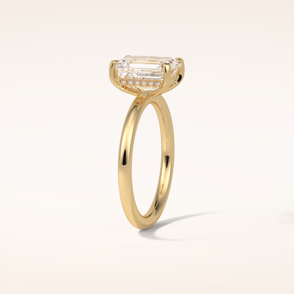 2.3 CT Emerald Shaped Hidden Halo Moissanite Engagement Ring