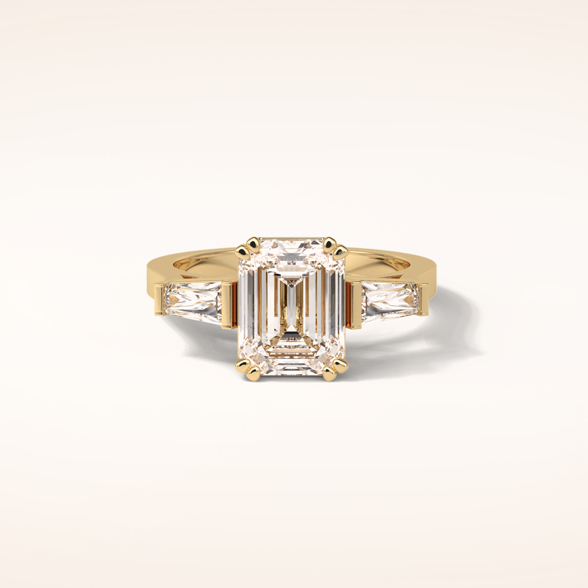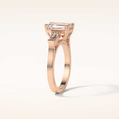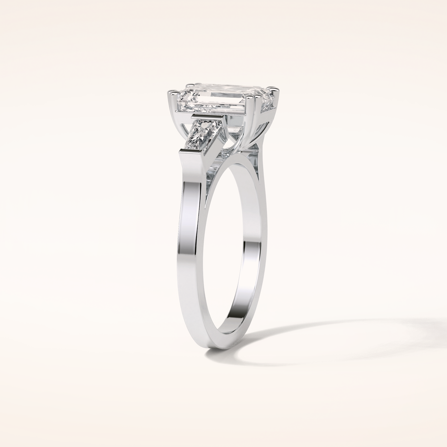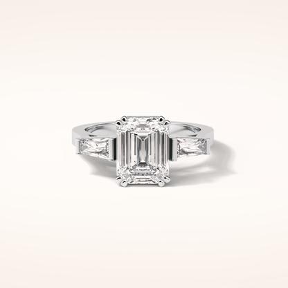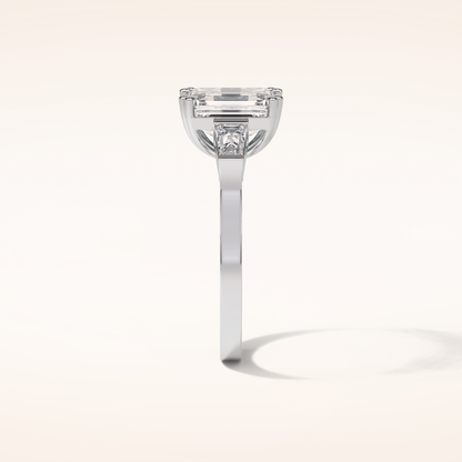 2.30 CT Emerald Shaped Three Stones Moissanite Engagement Ring