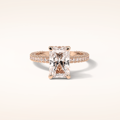 2.6 CT Radiant Shaped Hidden Halo & Pave Moissanite Engagement Ring