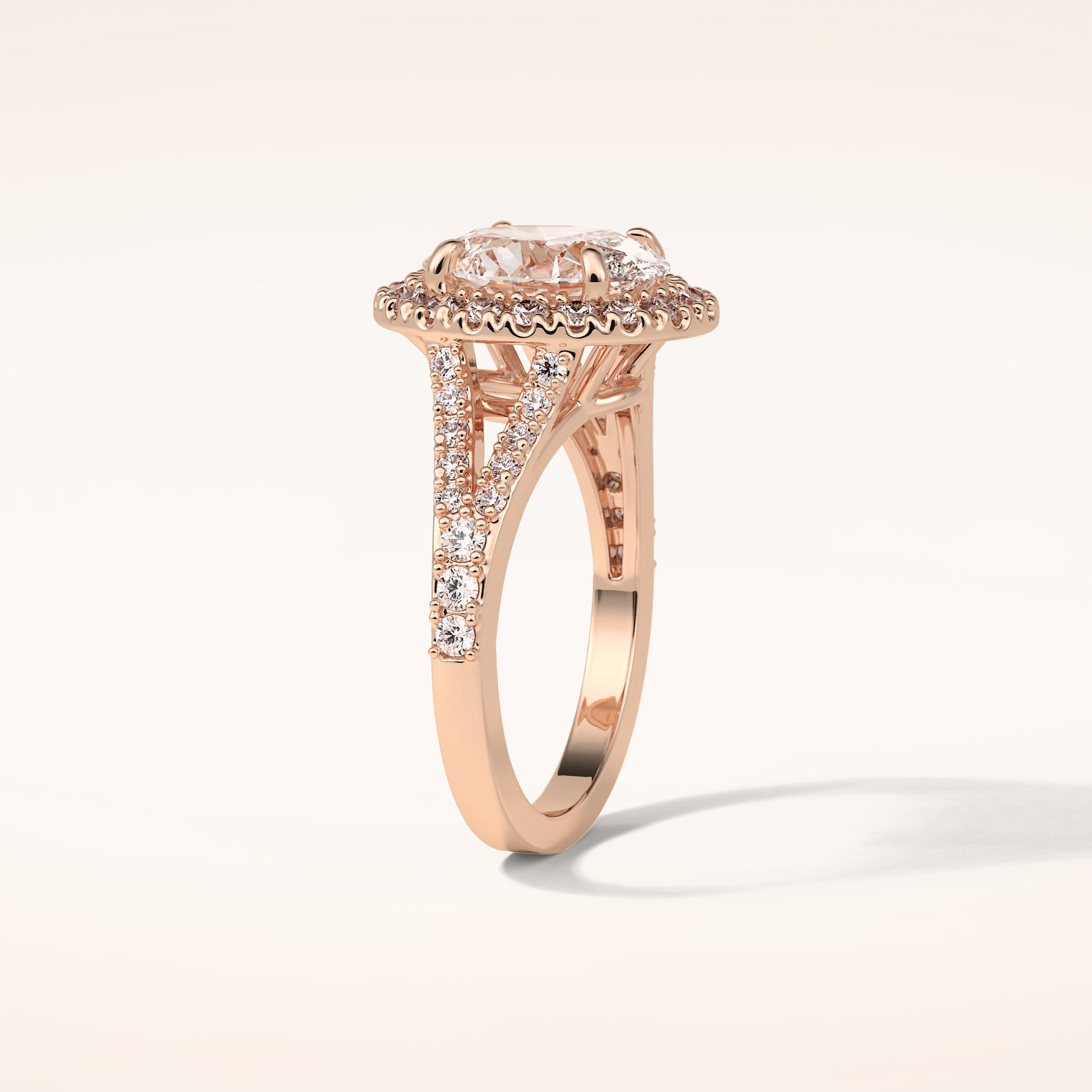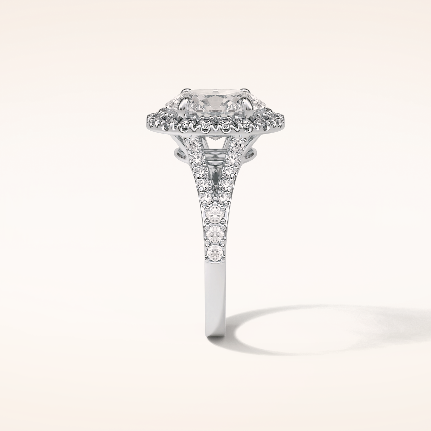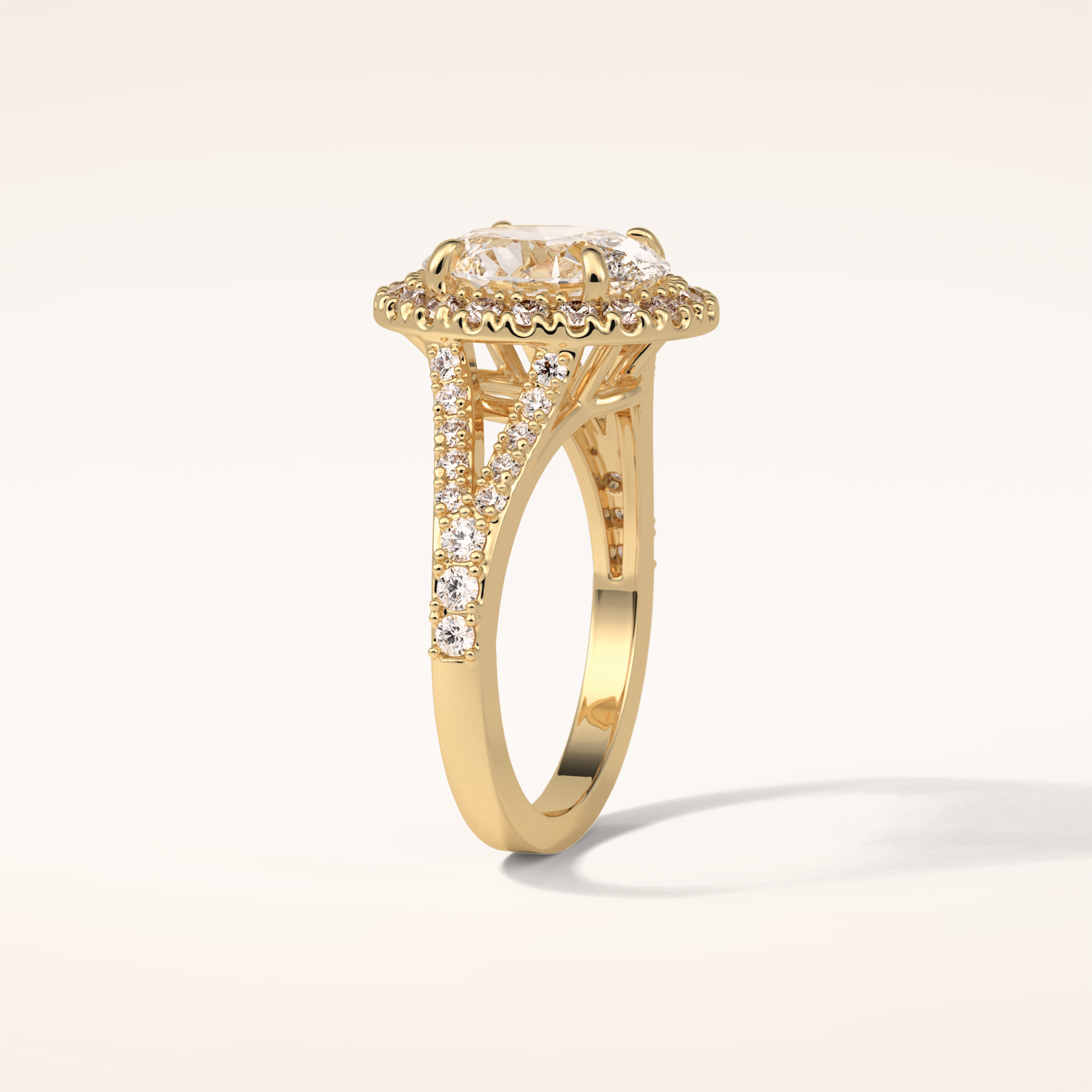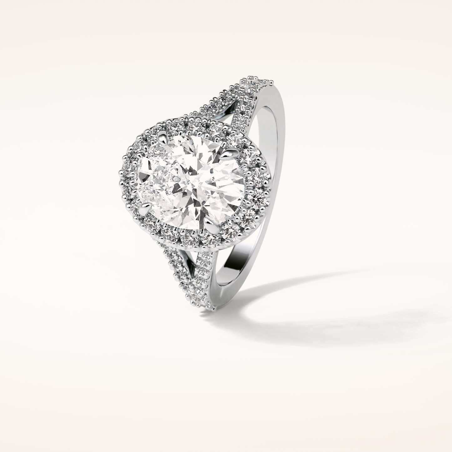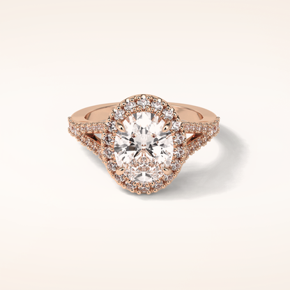 2.72 CT Oval Shaped Halo & Pave Split Shank Moissanite Engagement Ring